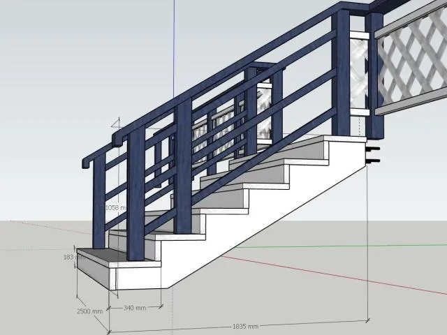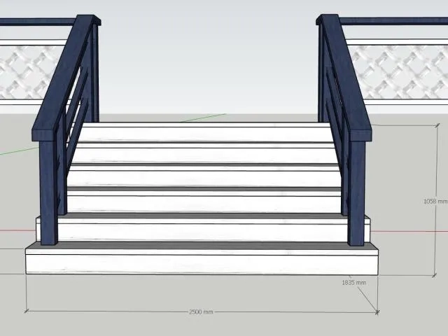Чертежи с размерами крыльца уличного с перилами к дому.