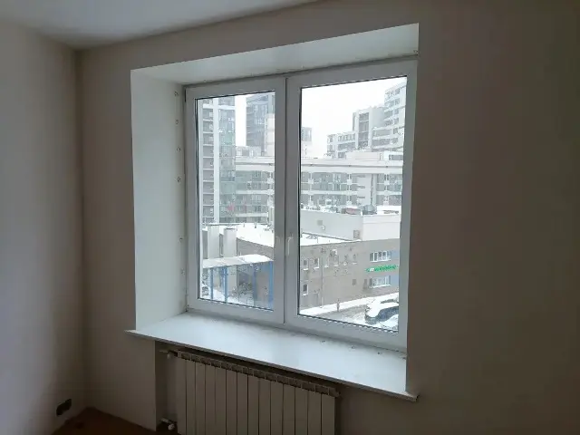 Стоимость подоконика 28 000 рублей за м2, откосы с "капиносом" (передний выступ, небольшой свес) из массива дуба, и покраска изделий бесцветным маслом с твердым воском (без установки, цена 2026 года).