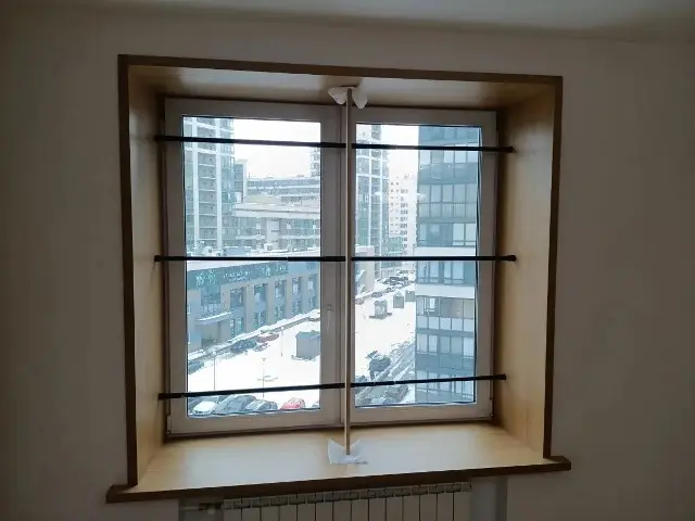 Подоконник с деревянными накладками на откосы окна под заказ из шпонированного МДФ.