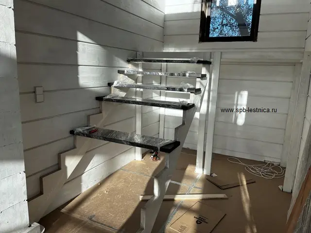 - брашировка ступеней, площадки, подступеней, тетив на косоурах, опорный щит установленные на перекрытие 2 этажа, планкен для подшивы низа маршей лестницы;