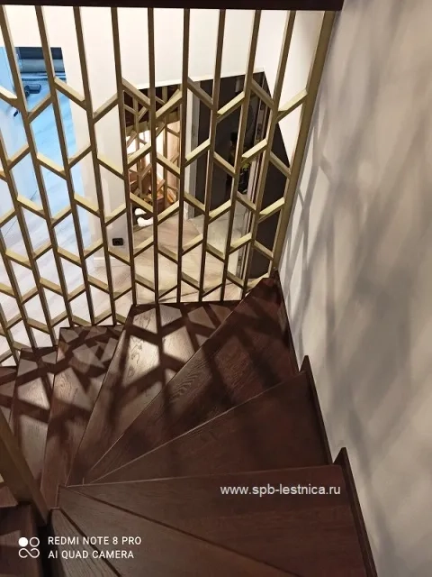 Отделка винтовой лестницы из бетона с гнутыми перилами.подробнее