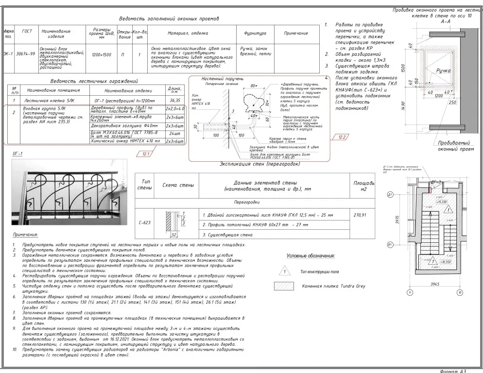1. Деревянный поручень: Профиль поручня применить по аналогии с поручнем ограждения лестничной клетки (дуб, пропитка маслом Osmo).