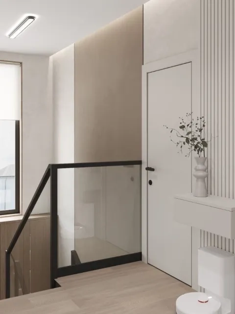 Дизайн проект интерьеров частного дома прислан нам для рассчета стоимости и сроков облицовки бетонных ступеней лестницы на второй этаж, деревянными ступенями из дуба, и изготовление с установкой стеклянного ограждения (согласно проекта).