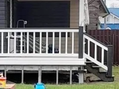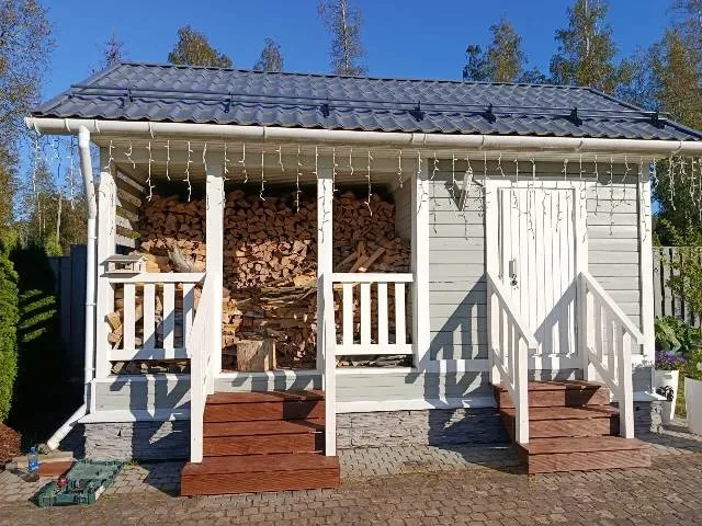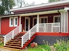 Срок выполнения составил 20 рабочих дней, в том числе демонтаж старых временных крылец к дому и к бане. У нас Вы можете так же закать деревянную лестницу для торого этажа внутри дома, шпонированные подоконники и откосы, каминную полку и другие изделия из дерева.