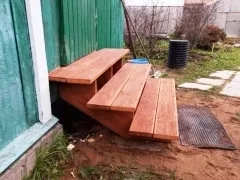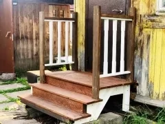 Лестницы для дома и бани на улице из дерева с перилами, стоимость.