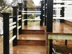 Из какого дерева надежней ограждение для улицы, особенно под отррытым небом. Классика это лиственница, если мы говорим об деревянных. Долговечней конечно ДПК. Но цена на порядок больше и есть ньюнасы в креплении. Из сосны долго стоит, но обязательно нужно использовать только сухую доску/брусок/планки/рейки и красить с предварительной грунтовкой праймером на 2 раза с промежуточной сушкой и затем укрывной.